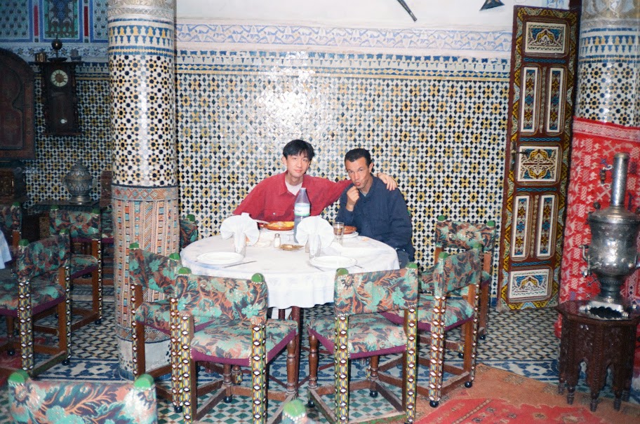 これがいわゆる「自称ガイド」(メディナ内の案内を受け持ち、高額のガイド料を取った上で自分がリベートの得られる店へ連れていって買い物させる、という連中)かとも思ったが、彼が、自分はガイドではないので金は要らない、ただ友達になりたいだけだ、他にも神戸や大阪に友達がいる、本当にただ友達になりたいんだけなんだ、としきりに強調するので、何も買うつもりがないことを伝えた上で付き合ってみることにした。
